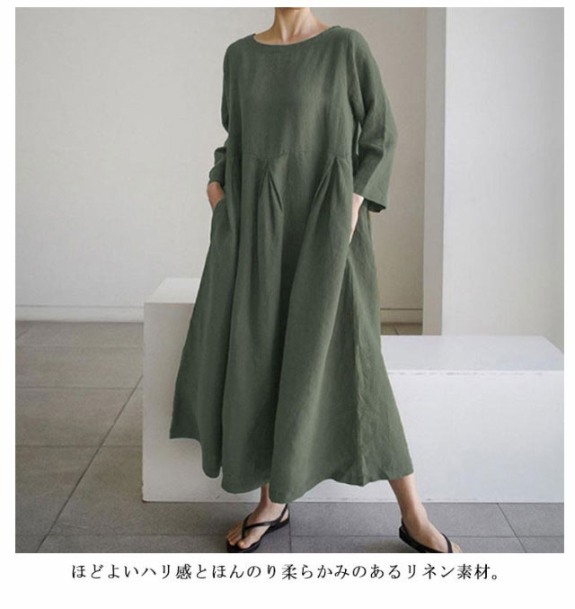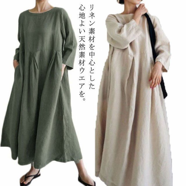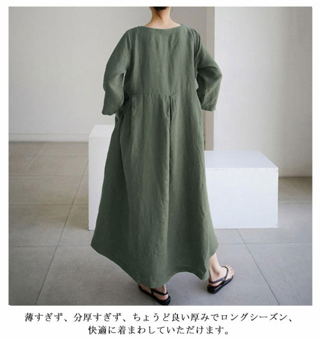レディース 七分袖 ナチュラル ナチュラルワンピース 【送料無料】 無地 森ガール フレアワンピース aラインワンピース 長袖 チュニック ワンピ