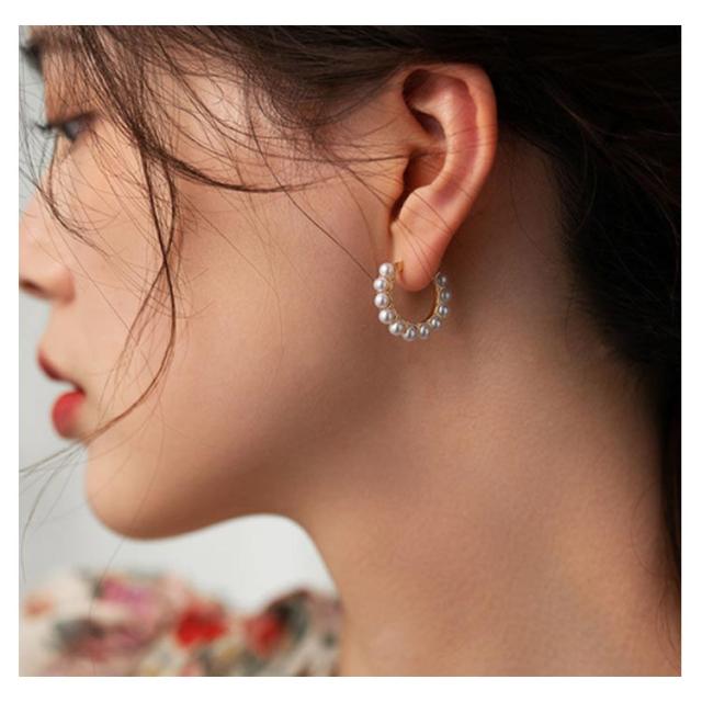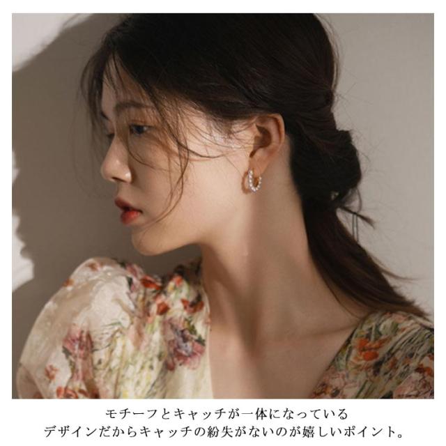 送料無料 イヤリング ピアス レディース ネジ式 小粒パール フープイヤリング フープピアス 大人 上品 エレガント 華奢 シンプル フェミニン ゴールド