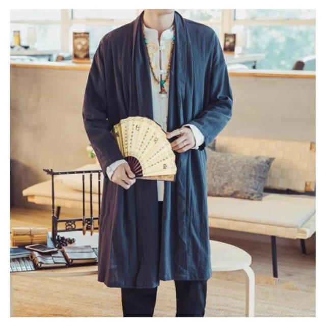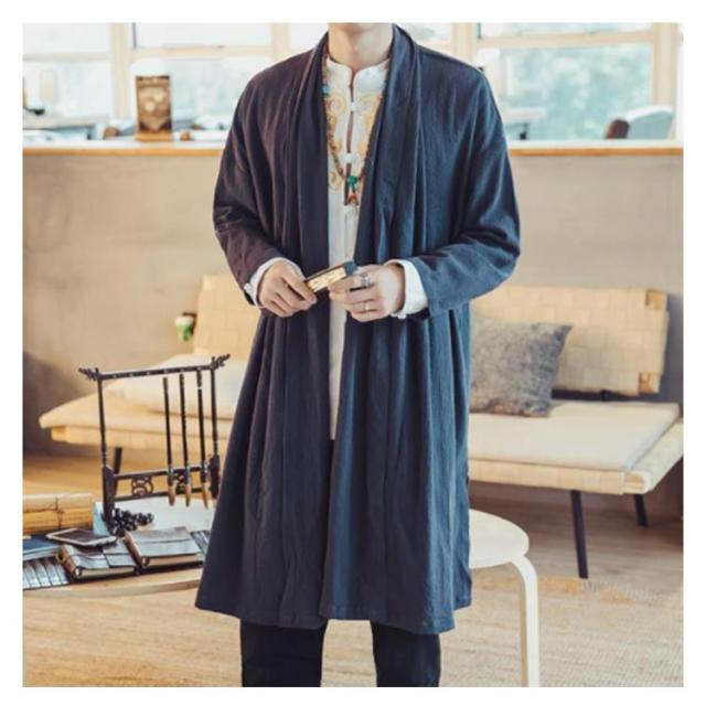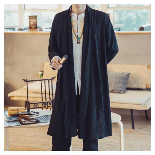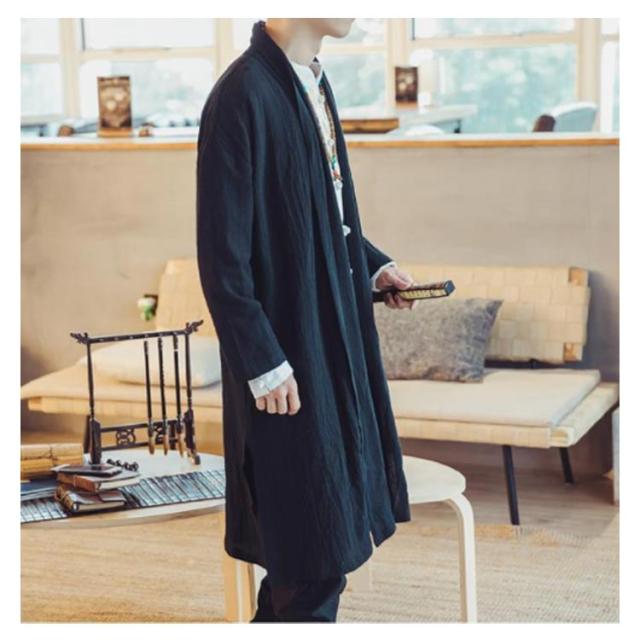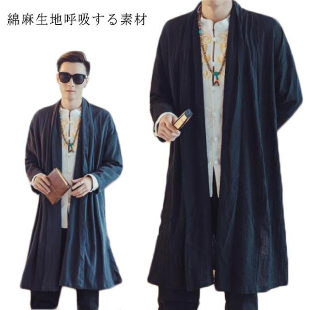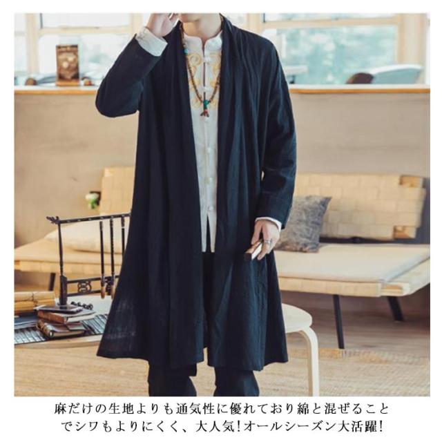 送料無料 メンズ アウター ロング丈 リネン コットンリネン 麻混 麻混 綿麻 麻カーデ 変形 変形カーデ ロングカーデ コットン モード エスニック アジアン 無地 大きいサイズ 春服 夏服 秋冬 秋服 お父さんのプレゼント お父さんのギフト