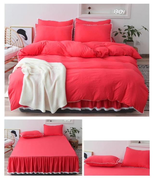ポンポンフリルベッドカバーセット 布団カバーセット 3点セット セット ベッドカバー ベッドスカート 北欧 韓国 フリル フリル付き シングル セミダブル 洋式 ベッドカバー シーツカバー 掛け布団カバー スカートシーツ おしゃれ 北欧 姫系 丸洗いOK