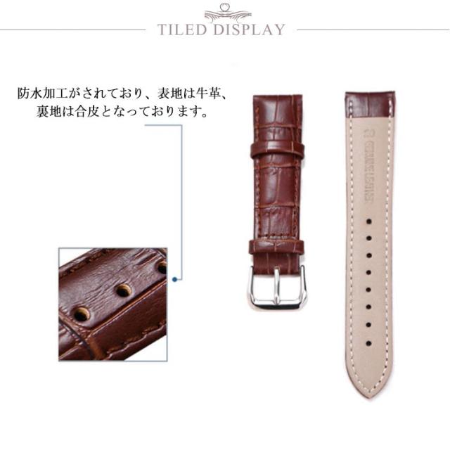 | 牛革素材の交換ベルトです。 シンプルなクロコ型押です。 防水加工がされており、表地は牛革、裏地は合皮となっております。 合皮は汗等の水分にも強く、防水性の優れており、お手入れの手間がかかりません。 また、革アレルギーの多くの原因である、原皮から製品用の革への加工過程で使用される、 様々な薬品による心配もない為、被れにくく、オススメです。 2個入りな商品なので、複数所持し、ファッションや季節等に合わせ、付け替えて楽しむ事も出来ます! | |