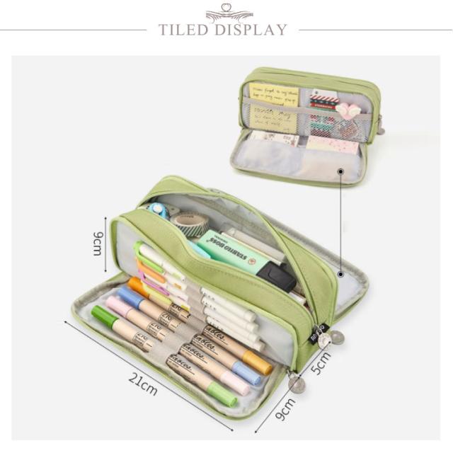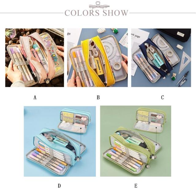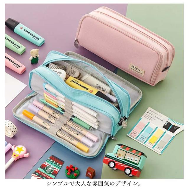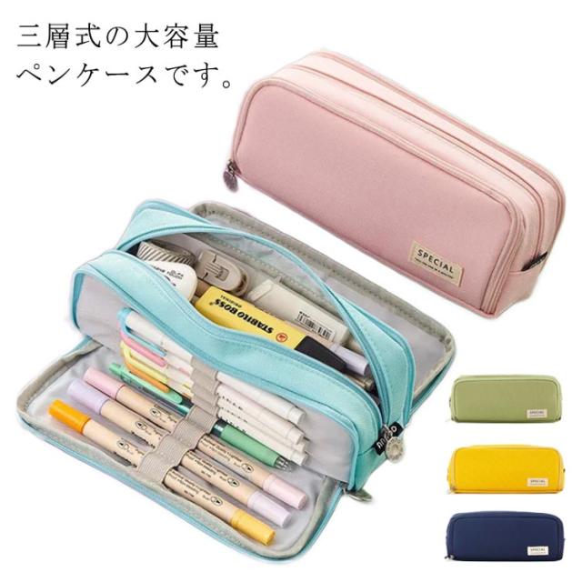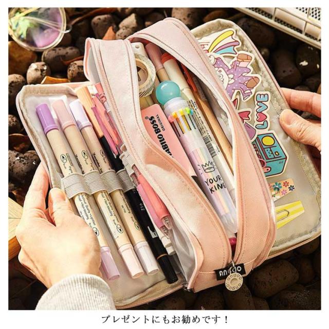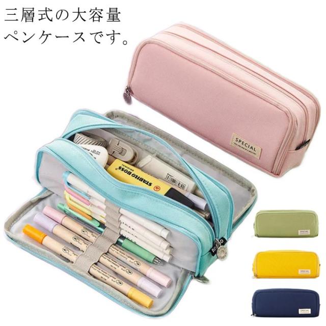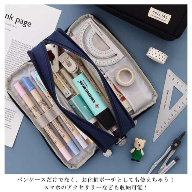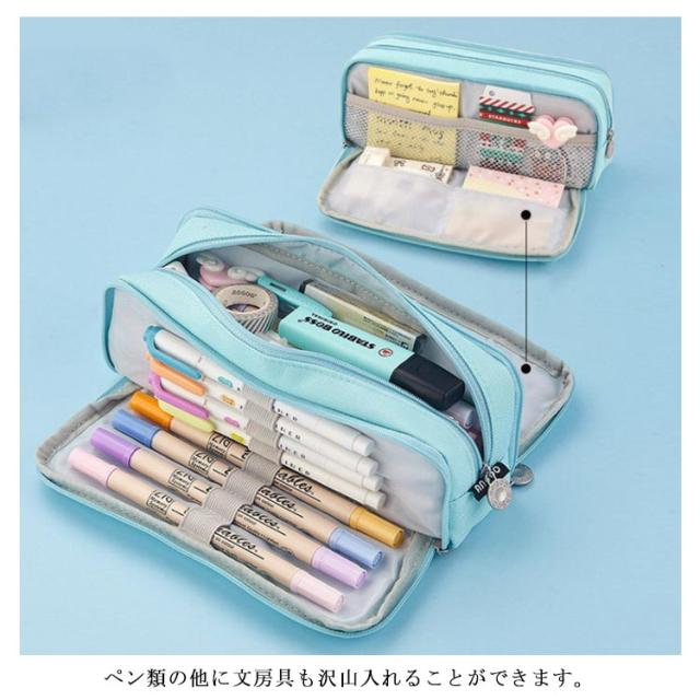 | 三層式の大容量ペンケースです。 ペン類の他に文房具も沢山入れることができます。 シンプルで大人な雰囲気のデザイン。 ペンケースだけでなく、お化粧ポーチとしても使えちゃう!スマホのアクセサリーなども収納可能! プレゼントにもお勧めです! | |