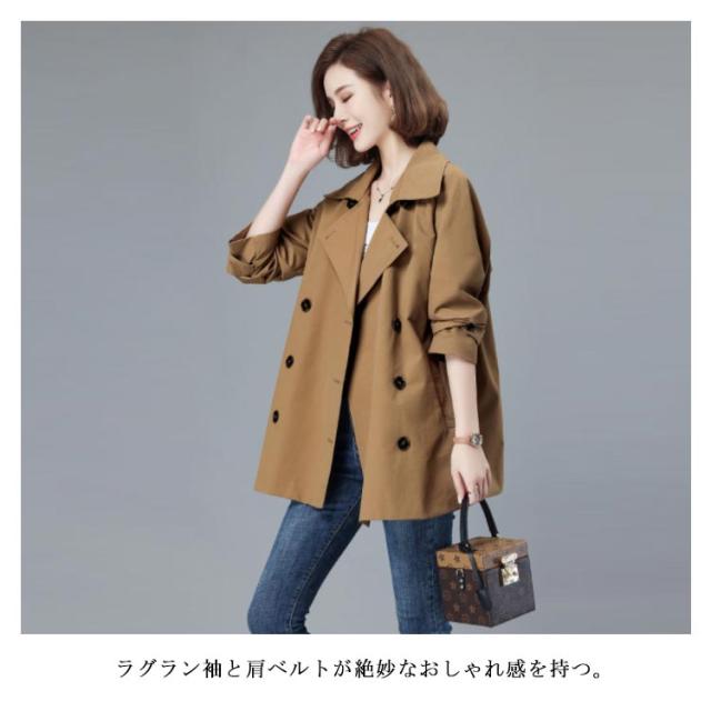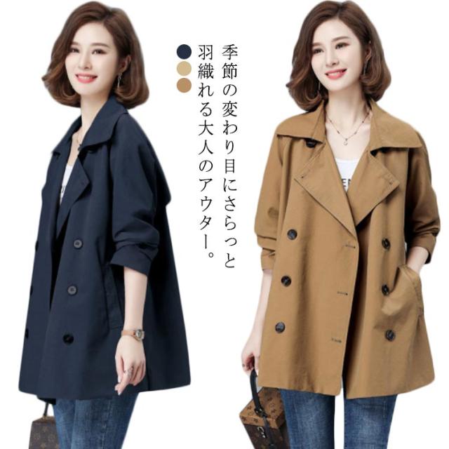 トレンチコート テロンチ 大きいサイズ スプリングコート レディース ショート 春コート 春 アウター 40代 50代 ショート丈 体型カバー 上品コート きれいめ ゆったり 薄手 軽い アウター 大人