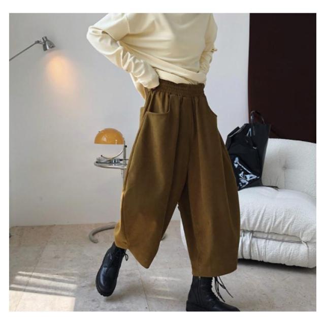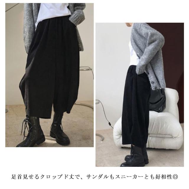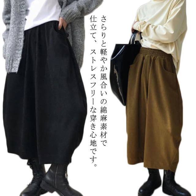 | さらりと軽やか風合いの綿麻素材で仕立て、ストレスフリーな穿き心地です。 ウエストゴムタイプで楽々。 全体的にはルーズなシルエットで体型カバー効果も抜群です。 足首見せるクロップド丈で、サンダルもスニーカーとも好相性◎ | |