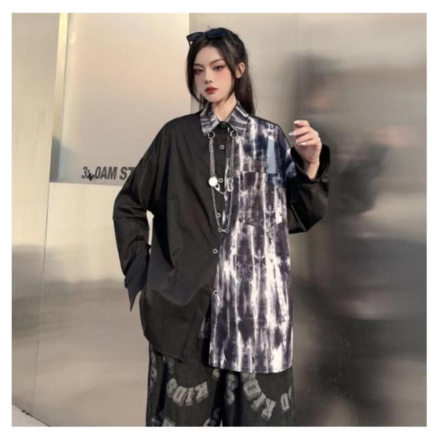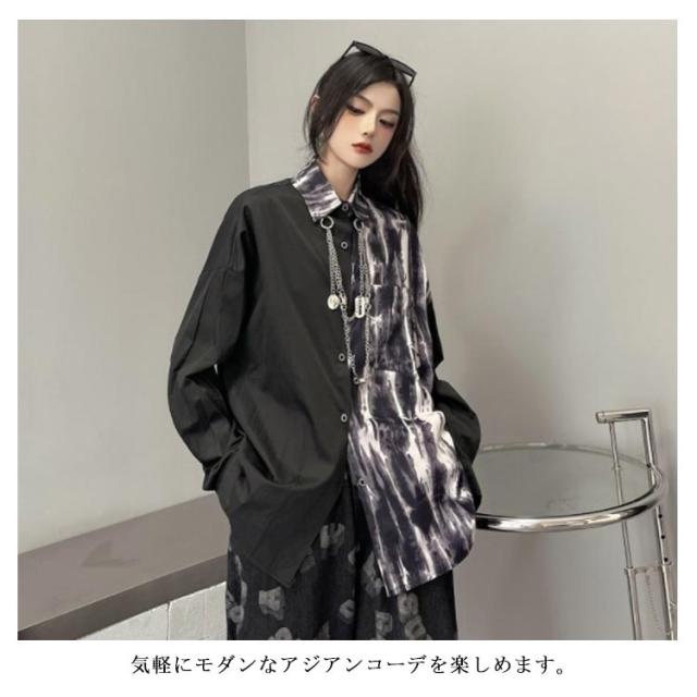 【送料無料】 モード系 レディースシャツ メンズシャツ ビッグシルエットシャツ 個性的 長袖 オーバーサイズ 原宿系 b系 モード系 男女兼用 黒 白 ユニセックス
