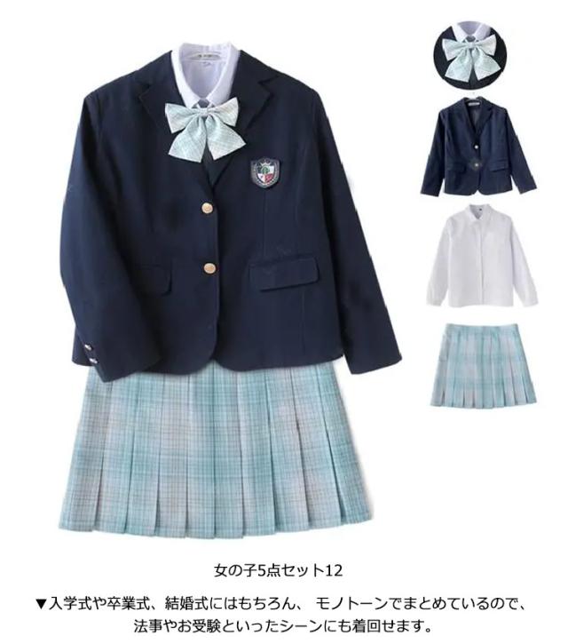 プリーツスカート ブレザー 女の子 制服 女子制服 5点セット チェック柄 スーツ 女の子 卒業式 中学生 全14色 卒業式スーツ 入学式卒業式スーツ 5点セット 学生服 上下セット 小学校 中学校 高校生 小学生 高校生