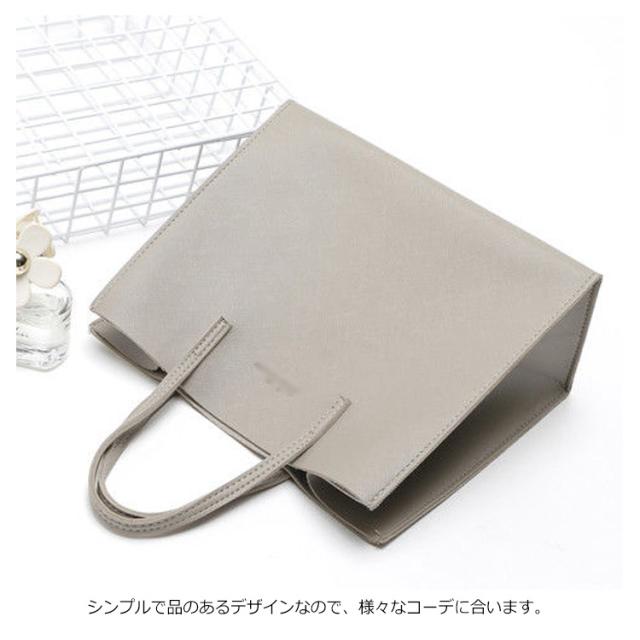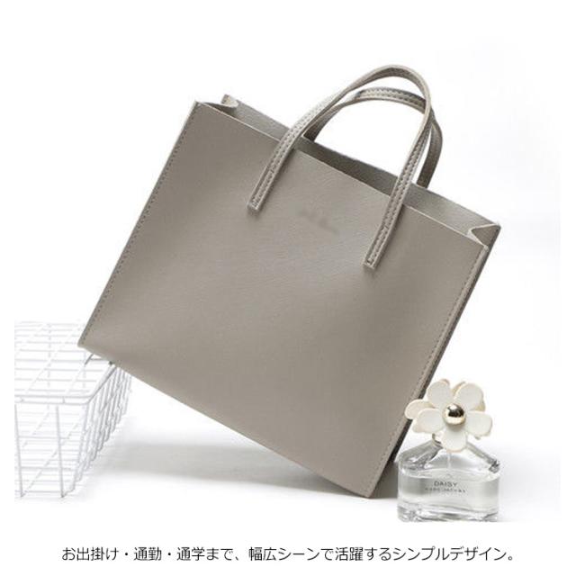 | レディース トートバッグ、A4サイズ収納OK! お出掛け・通勤・通学まで、幅広シーンで活躍するシンプルデザイン。 シンプルで品のあるデザインなので、様々なコーデに合います。 扱いやすく、摩擦や水漏れにも強い上に合皮製でお手入れも簡単にできる◎ | |