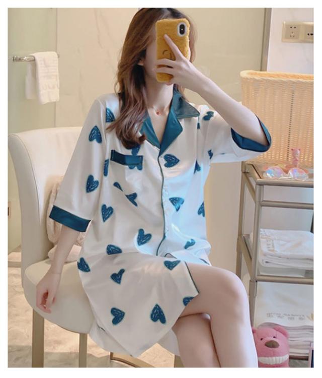 パジャマ ワンピース 前開き 春 秋 夏 サテン パジャマ ワンピース ランジェリー ロング丈 無地 シルクタッチ レディース ルームウェア 産後 マタニティ 女性 女の子 ママ 大人 可愛い かわいい セクシー