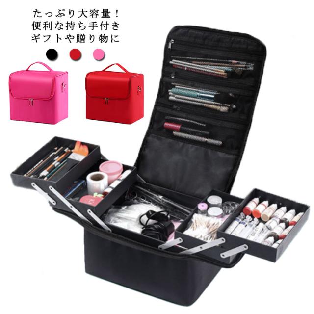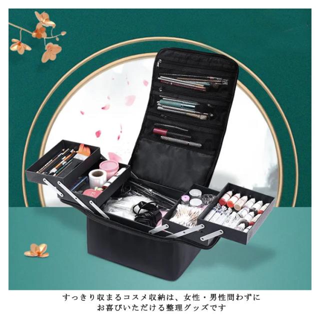 ケース 化粧品 ナイロン 大容量 メイクボックス バニティバッグ 防水 イク道具 黒 収納 バニティポーチ メイク コスメ収納 ボックス コスメボックス ポーチ 化粧ポーチ ジェルネイル ネイル コスメ バニティ 用品 かわいい