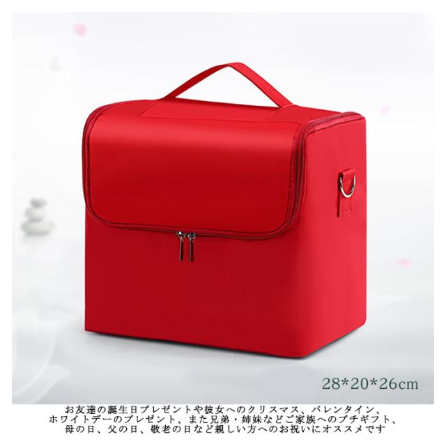 | ■たっぷり大容量! 広げると左右2段のトレイに、大きなメイン収納。 化粧用品やメイク道具がたっぷり収納できるメイクボックスです。 ■便利な持ち手付き 持ち運びにも役立つ持ち手付きのバニティポーチ。 お出かけや旅行にもこれさえあれば、メークに困りません。 ■ギフトや贈り物に すっきり収まるコスメ収納は、女性・男性問わずにお喜びいただける整理グッズです。 お友達の誕生日プレゼントや彼女へのクリスマス、バレンタイン、ホワイトデーのプレゼント、また兄弟・姉妹などご家族へのプチギフト、母の日、父の日、敬老の日など親しい方へのお祝いにオススメです。 | |