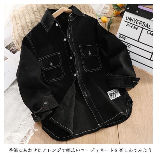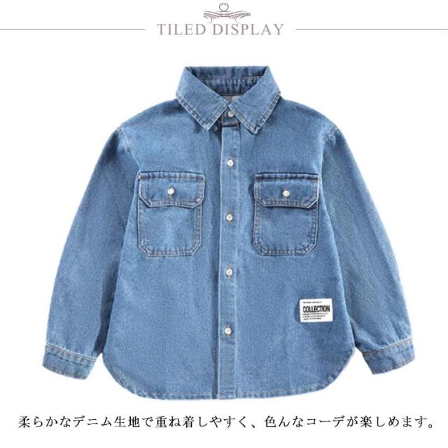 シャツ キッズ デニムシャツ 男の子 子供シャツ 入学式 ジュニア 可愛い フォーマル 長袖 ブラウス カジュアルシャツ シャツ おしゃれ キッズ こども 七五三 子供