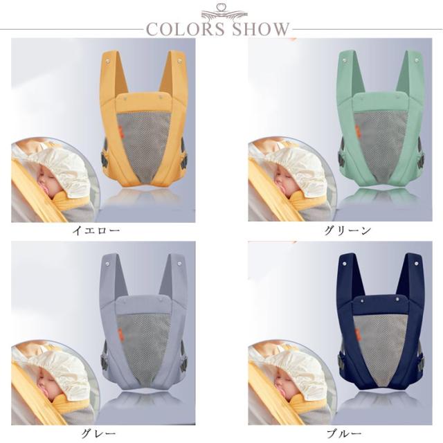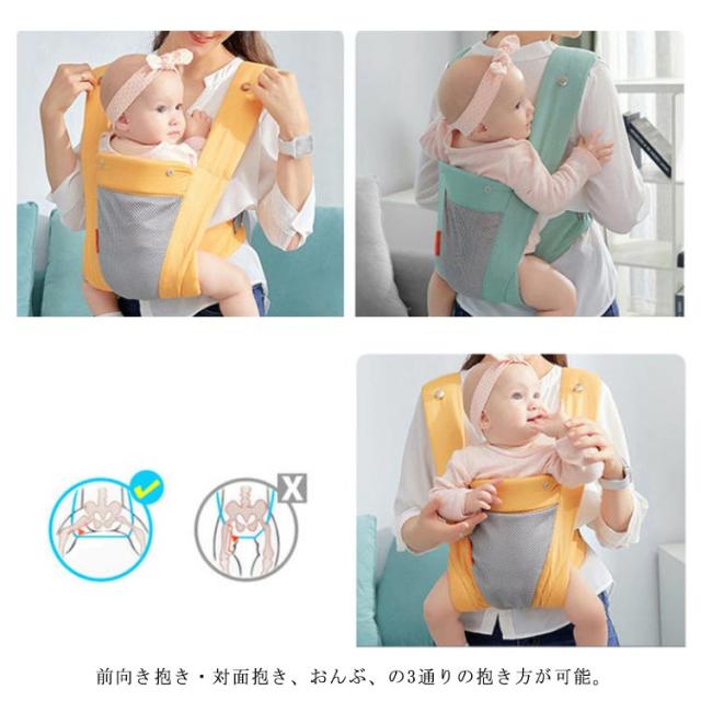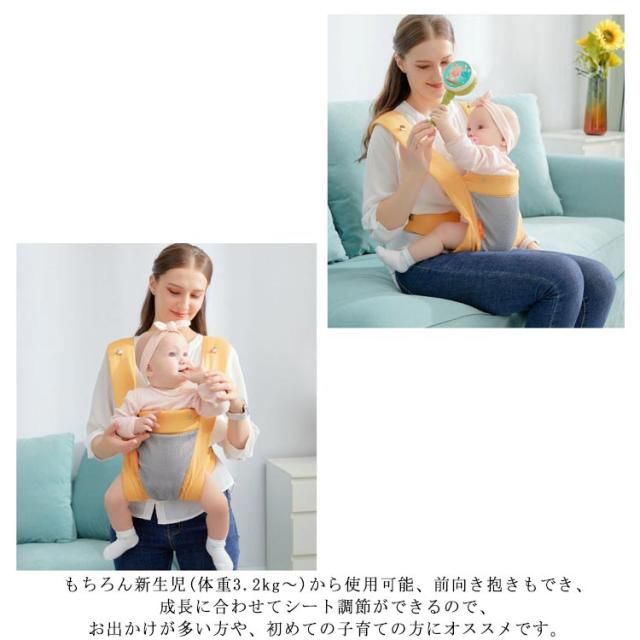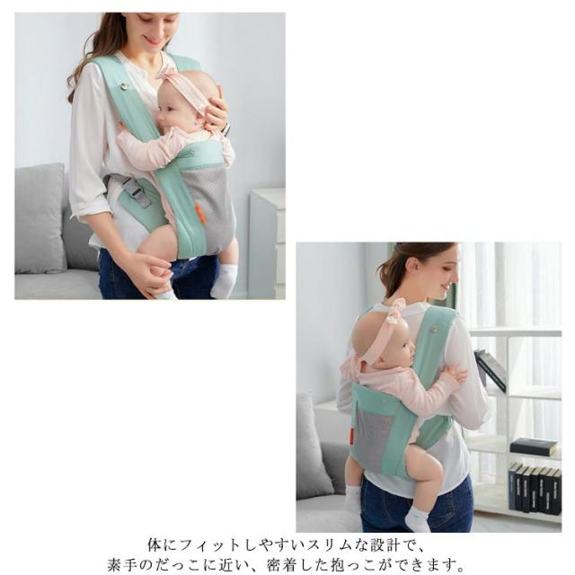 | 赤ちゃんの快適度がUP! 柔らかい肌ざわりと優れた通気性を持つメッシュを使用! もちろん新生児(体重3.2kg〜)から使用可能、前向き抱きもでき、成長に合わせてシート調節ができるので、お出かけが多い方や、初めての子育ての方にオススメです。 前向き抱き・対面抱き、おんぶ、の3通りの抱き方が可能。 人間工学に基づいた設計で肩腰に負担をバランスよく分散。 体にフィットしやすいスリムな設計で、素手のだっこに近い、密着した抱っこができます。 | |