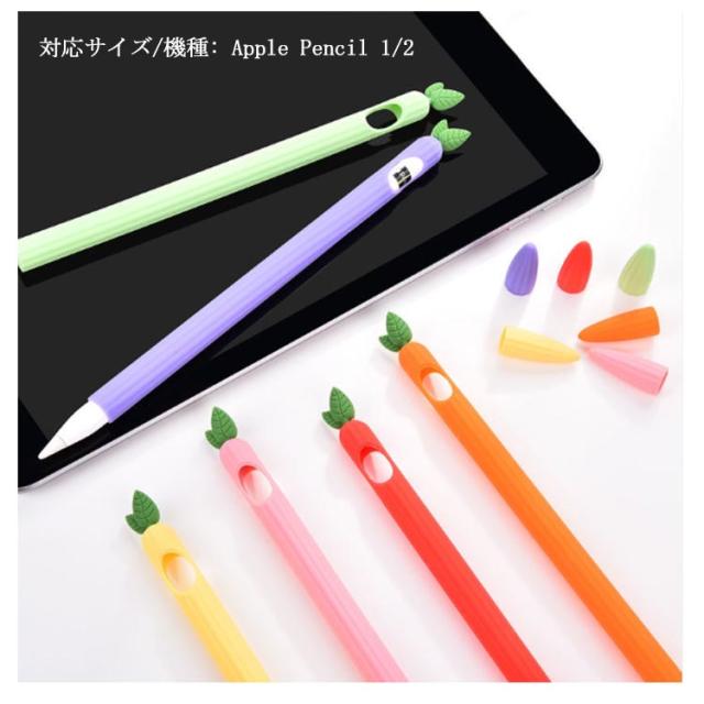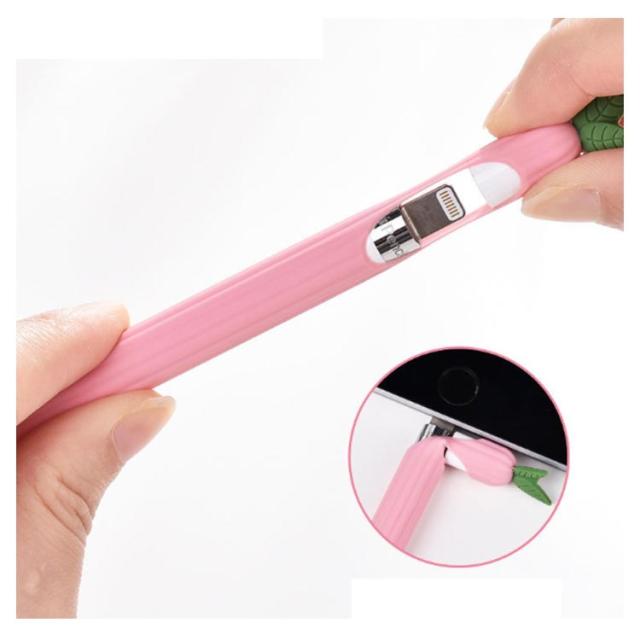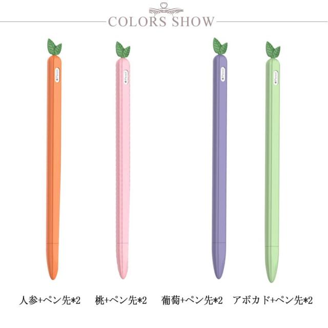 3点セット カバー*1 ペン先カバー*2 Apple Pencil カバー シリコンケース 耐衝撃 ニンジン 人参 桃 葡萄 アボカド 保護ケース 可愛い カバー アップルペンシル 1.0 2.0 対応 ソフトカバー タッチペン 保護ケース 一体型 カバー 充電 可能