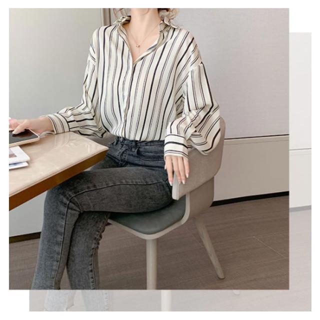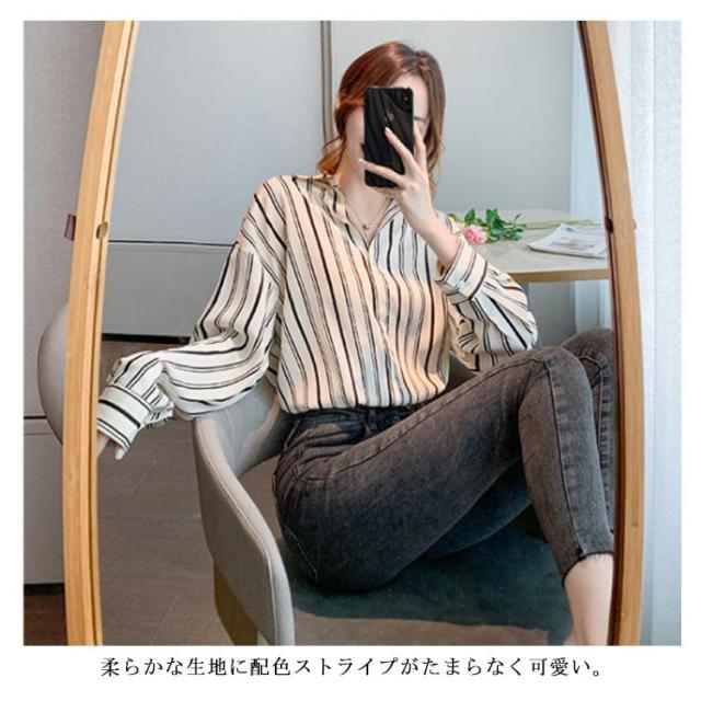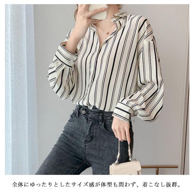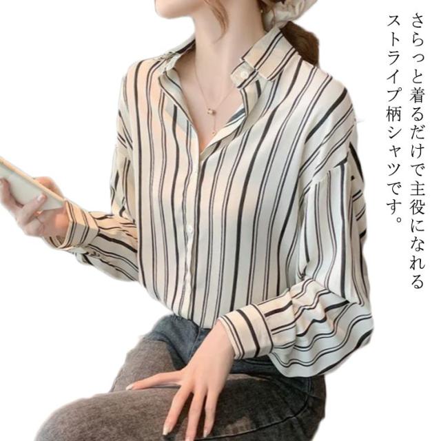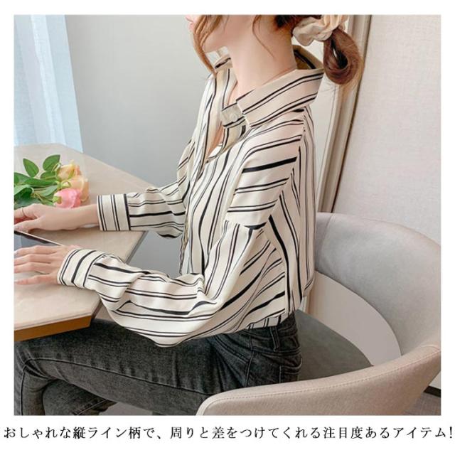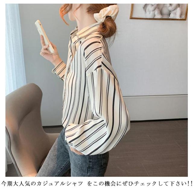 可愛い ゆったり ストライプ柄 レディース ストライプシャツ 長袖シャツ 総柄 柄 シャツブラウス カジュアルシャツ シャツ 春 夏 秋 柄物 おしゃれ ブラウス