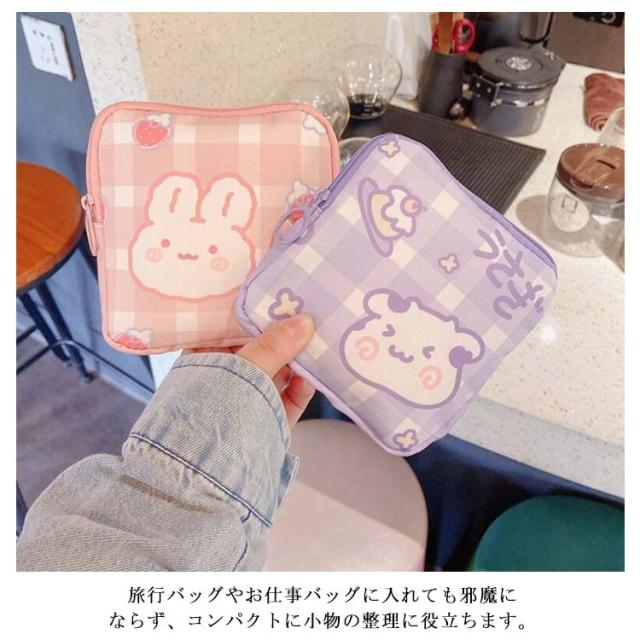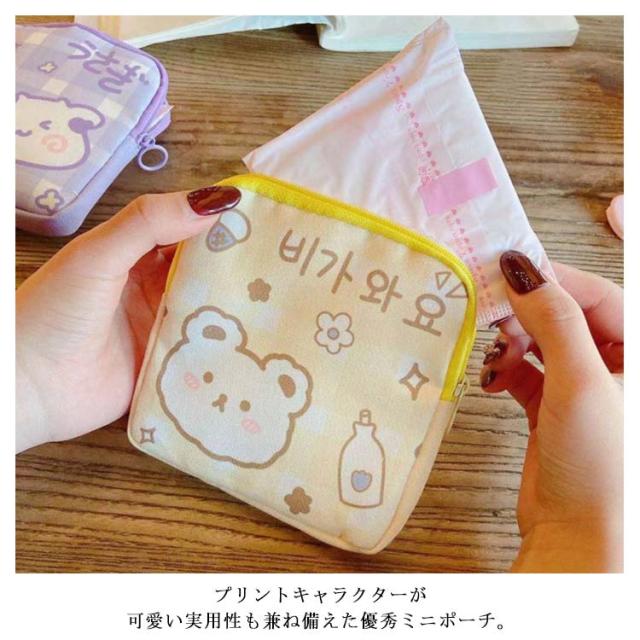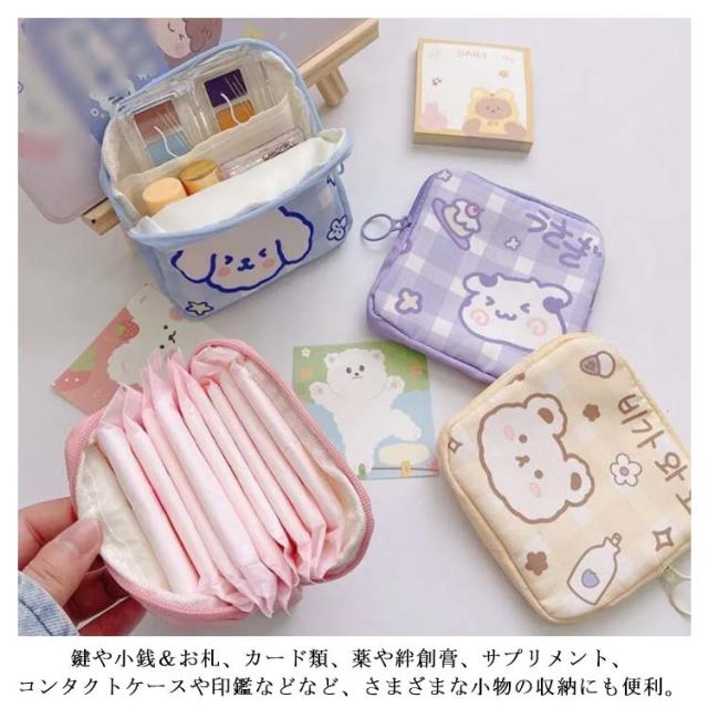 | 小物入れやコスメ、生理用ナプキン入れなどに◎ プリントキャラクターが可愛い実用性も兼ね備えた優秀ミニポーチ。 旅行バッグやお仕事バッグに入れても邪魔にならず、コンパクトに小物の整理に役立ちます。 ファスナーで大きく開くフルオープン仕様。出し入れもラクラク! 鍵や小銭&お札、カード類、薬や絆創膏、サプリメント、コンタクトケースや印鑑などなど、さまざまな小物の収納にも便利。 中が見えないので生理用ナプキン入れにも最適◎ | |