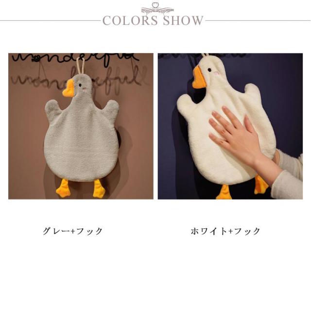 | ふんわり気持ちいい手触りで水分を優しくスッと吸収。 さらにフックに可愛くかけられるので、見ているだけでも癒されるインテリアにもなります♪ ちょこんと置いておくだけでも可愛い。 ちょっとしたギフトにもオススメです。 | |