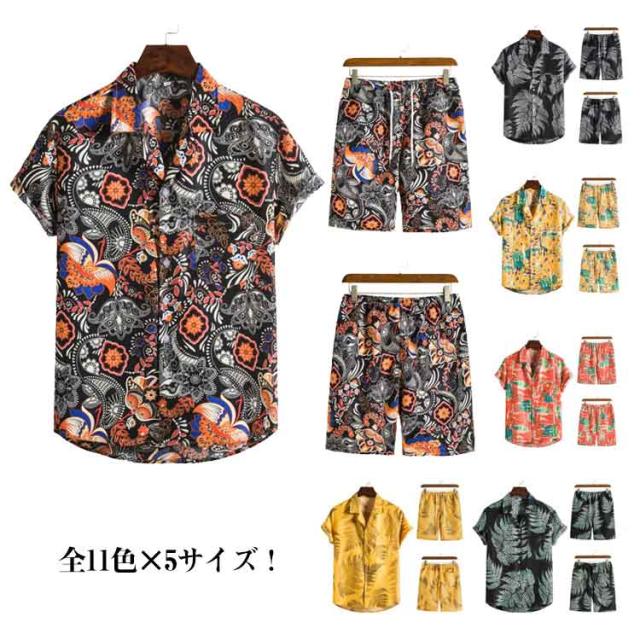 全11色 2点セット アロハシャツ メンズ レディース 半袖 総柄シャツ ペイズリー 送料無料 カジュアルシャツ 開襟シャツ 男女兼用 花柄 涼しげ アロハ シャツ トップス 海 リゾート 旅行 修学旅行 ユニセックス