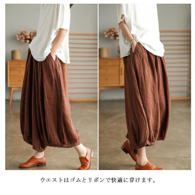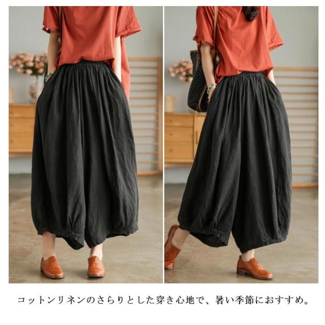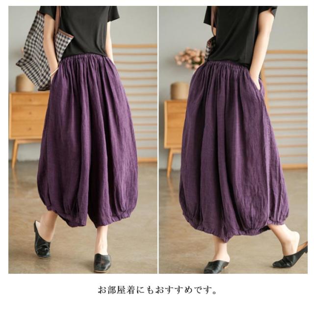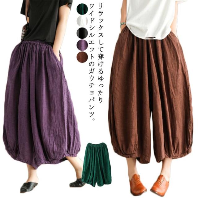 ガウチョパンツ リラックス ワイドパンツ 綿麻パンツ ボトムス 無地 リネンパンツ 夏 かジュアルパンツ シンプル レディース ワイドパンツ ウエストゴム ゆったり 楽ちん マキシ丈 ロング丈 送料無料