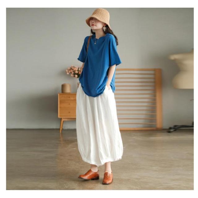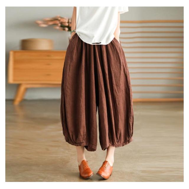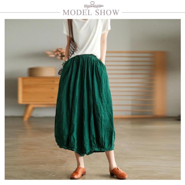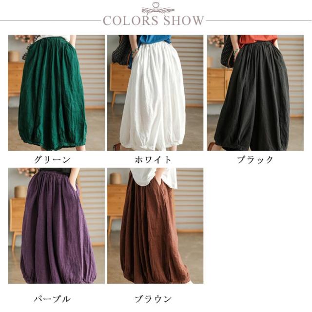 | リラックスして穿けるゆったりワイドシルエットのガウチョパンツ。 コットンリネンのさらりとした穿き心地で、暑い季節におすすめ。 ウエストはゴムとリボンで快適に穿けます。 お部屋着にもおすすめです。 | |