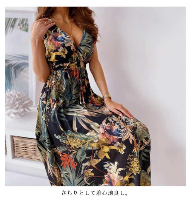 long フレア sexy おしゃれ キャミソール 大人 Vネック backless マキシ丈ワンピース レディース backless 花柄 リゾートワンピ エレガント シフォン ノースリーブ dress ロング丈ドレス 水着の上に着る 薄手 ハワイ 大きいサイズ