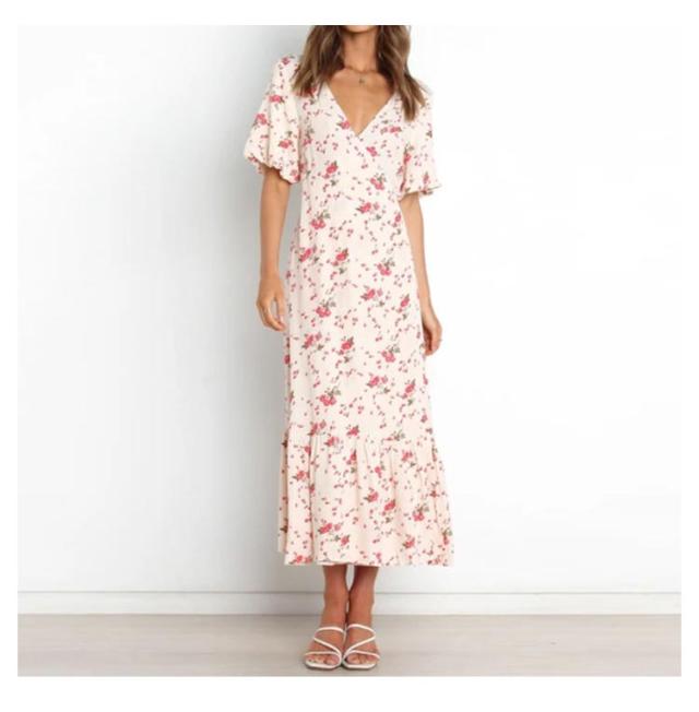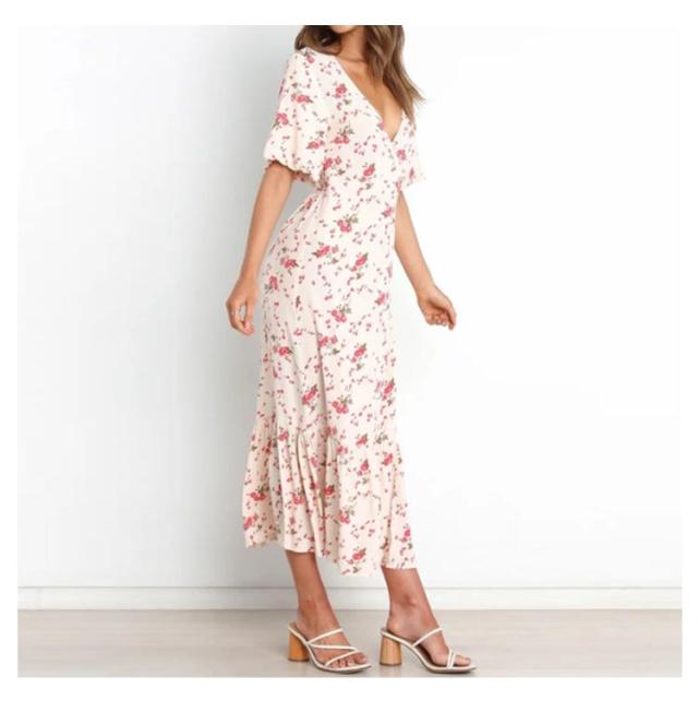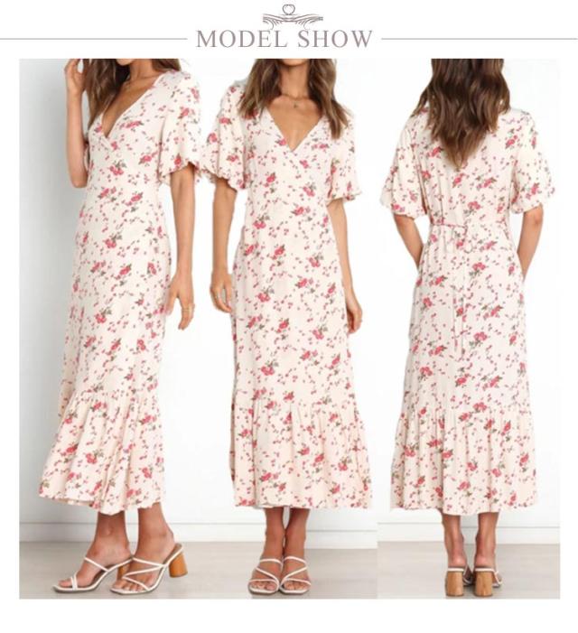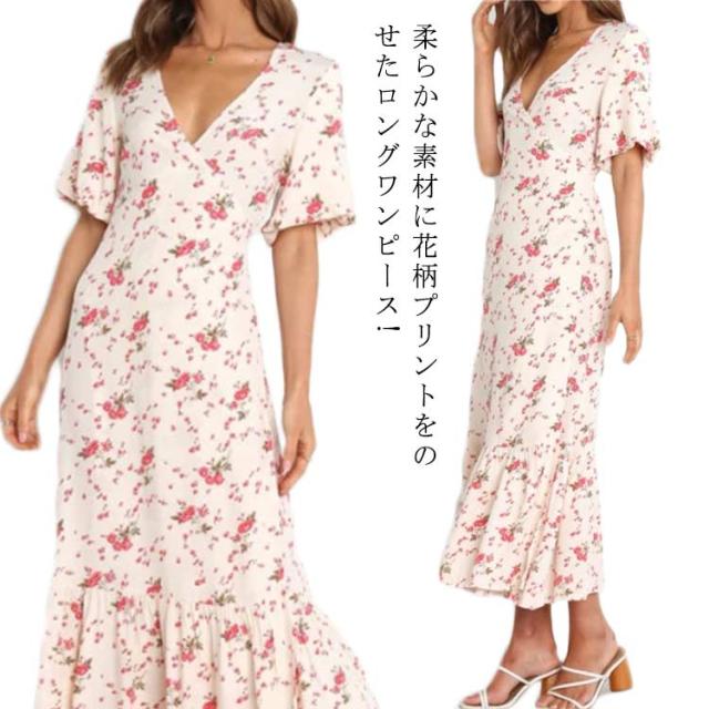 花柄ワンピース falbala ロング フレアワンピース 夏 花柄ロングワンピース vネック シフォンワンピース マキシ丈 春夏 花柄ワンピース dress ワンピ 薄手 涼しい リゾート シフォン flowers