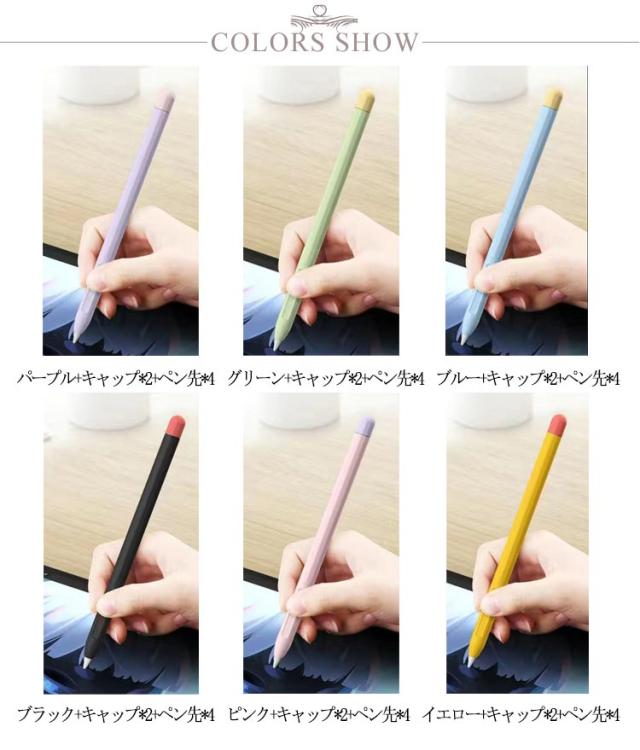 ケース Pencil ペン先カバー*4 カバー*1 7点セット キャップカバー*2 紛失/落下防止 シリコンケース 滑り止め 握りやすい iPad アップルペンシル Apple