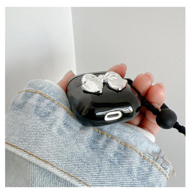ワンポイント AirPods Case メタル エアーポッズ エアーポッズ metal イヤホン エアポッズ ワイヤレス アイフォン ファッション 立体的 可愛い ユニーク 金属 デザインケース リボン