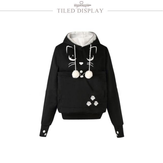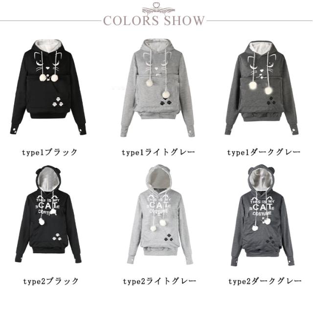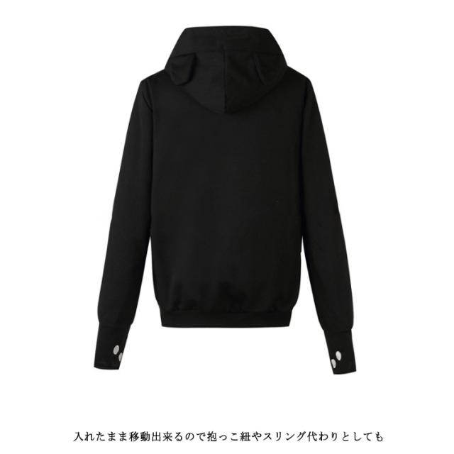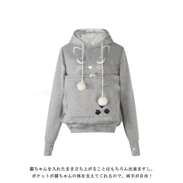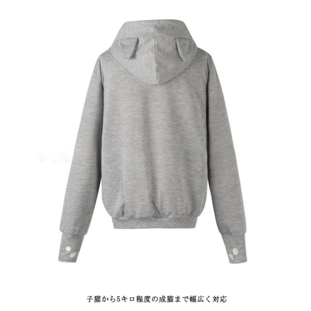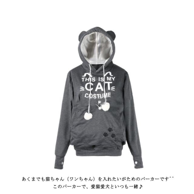 | 猫や犬(小型犬)、小さい動物を入れるためのパーカーです☆ 入れたまま移動出来るので抱っこ紐やスリング代わりとしても。 猫ちゃんを入れたまま立ち上がることはもちろん出来ますし、ポケットが猫ちゃんの体を支えてくれるので、両手が自由! 子猫から5キロ程度の成猫まで幅広く対応。 ポケットに入ったままボンボンで遊ぶのがたまらにゃい! フード部分にも猫耳がついててかわいい!! あくまでも猫ちゃん(ワンちゃん)を入れたいがためのパーカーです^^ このパーカーで、愛猫愛犬といつも一緒♪ | |