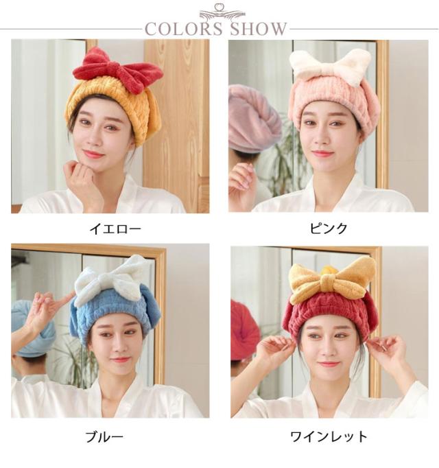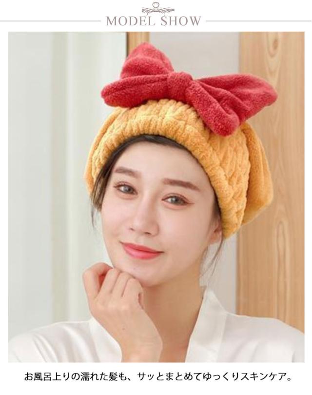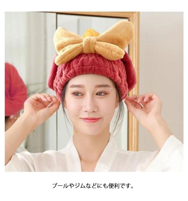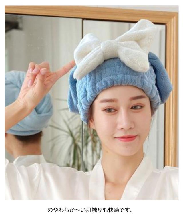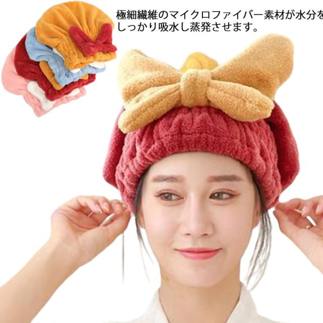 可愛い タオルドライ 吸水 ドライキャップ 送料無料 タオルキャップ たおる 吸水タオル 速乾 タオル ヘアドライ リボン付き 無地 ヘアタオルキャップ