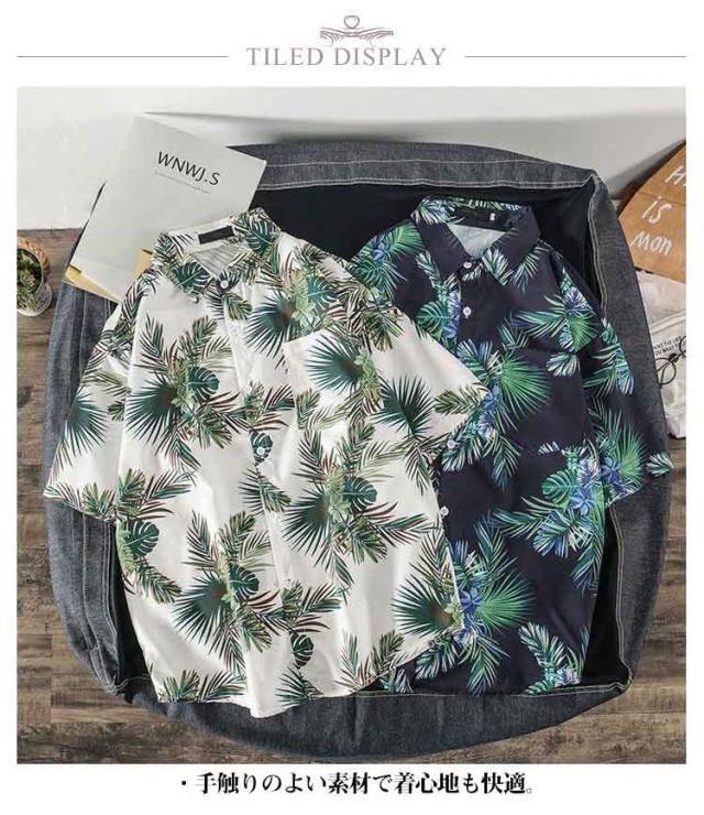アロハシャツ メンズ レディース 人気 リーフ(葉)柄 総柄シャツ カジュアルシャツ 開襟シャツ コットン 生地 コーデ 着こなし おしゃれ プレゼント ギフト