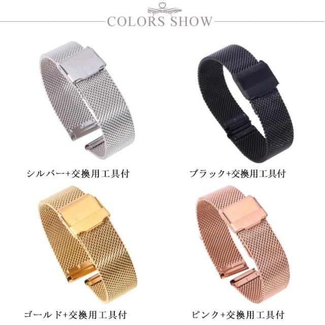 時計ベルト メッシュ ミラネーゼ 腕時計ベルト 12mm 10mm 14mm 16mm 18mm 20mm 22mm 時計バンド 腕時計ベルト ステンレススチール 簡単ベルト交換用工具付