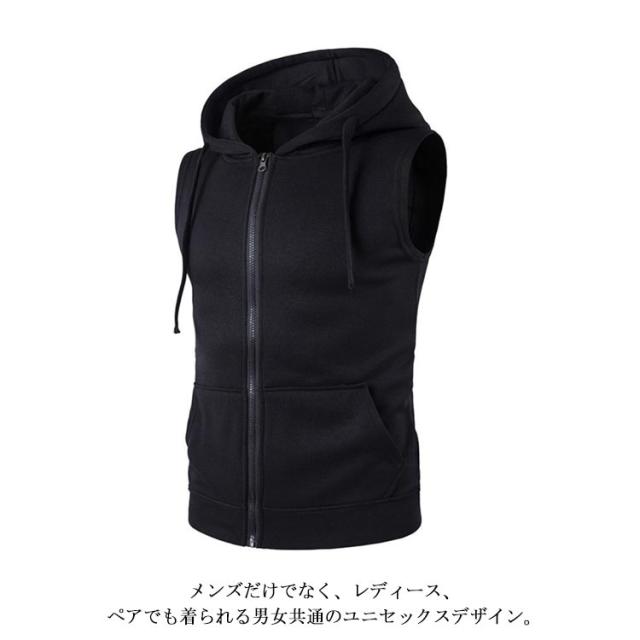 ノースリーブパーカー フード メンズ ベスト フード付きスウェットベスト スウェット 韓国系 パーカー スエット スウェットベスト パーカーベスト フーデッドベスト カジュアル フルジップ