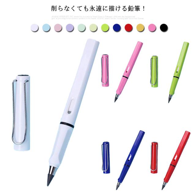 永久鉛筆 えんぴつ 3本セット 選べる12色 鉛筆 永遠の鉛筆 書き切れない インクいらないペン 削らない 消しゴム付き 再利用可能 大人 キッズ 子ども 石墨芯