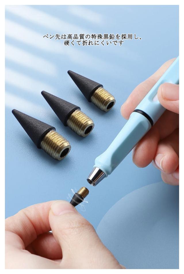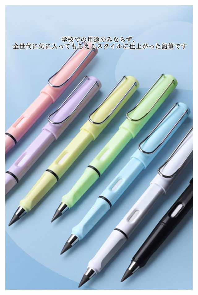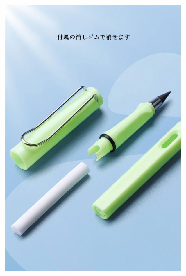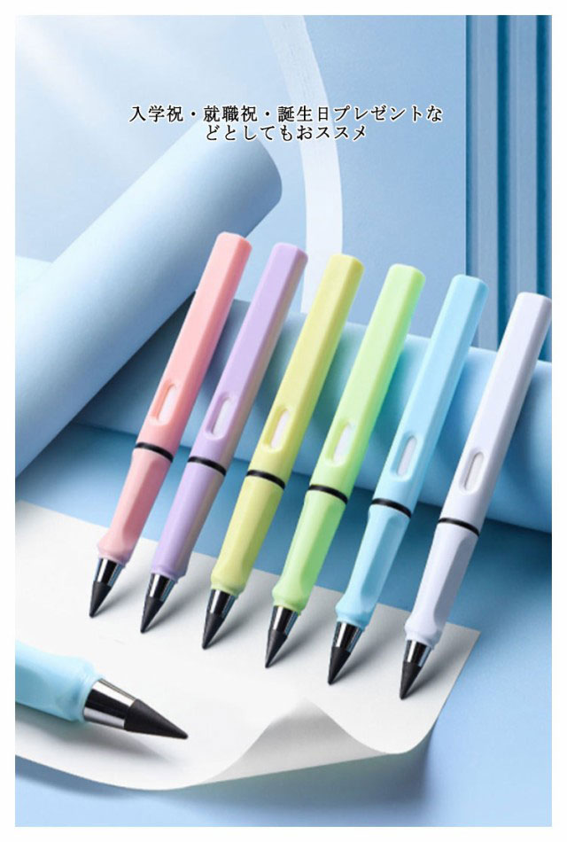 | 削らなくても永遠に描ける鉛筆! 付属の消しゴムで消せます。 ペン先は高品質の特殊黒鉛を採用し、硬くて折れにくいです。 学校での用途のみならず、全世代に気に入ってもらえるスタイルに仕上がった鉛筆です。 入学祝・就職祝・誕生日プレゼントなどとしてもおススメ。 | |