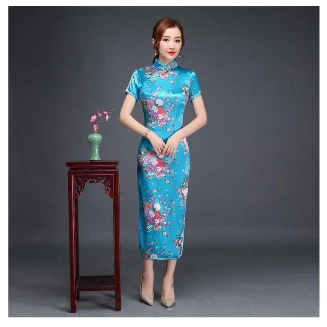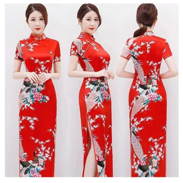 | ボディラインを美しく見せる、 大変綺麗なチャイナドレスです ロング丈にスリットで脚長効果抜群です。 美しい孔雀柄 花柄の美しいデザインです。 | |