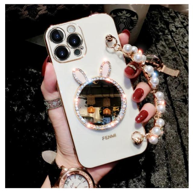 se Pro ケース pro 12 11 iPhone13 かわいい ミラー付き 韓国 鏡付き きらきら 兎 パール iPhone12 Promax iPhone iPhone11 キラキラ