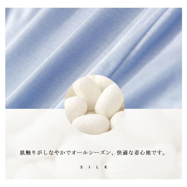| シルク100% 肌触りがしなやかでオールシーズン、快適な着心地です。 ご家庭で洗えます。 ぬるま湯か水で手洗いするのが最適ですが、洗濯機をご使用の場合は、ネツトに入れ、短時間ソフトでお洗い下さい。 必ず中性洗剤をお使い下さい。 | |