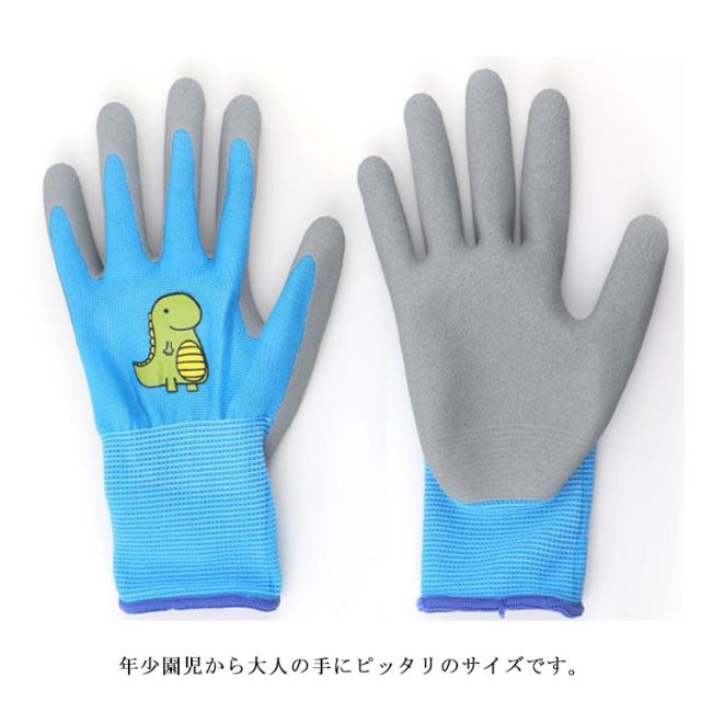 | 大人、子供用の滑り止め付き作業用軍手です。 ガーデニングやお掃除に、日曜大工や軽作業に、キャンプ、ハイキング、園芸、アウトドアなどに適しています。 通気性が良く柔軟で使いやすい! 手のひらスベリ止め付きです。 年少園児から大人の手にピッタリのサイズです。 | |