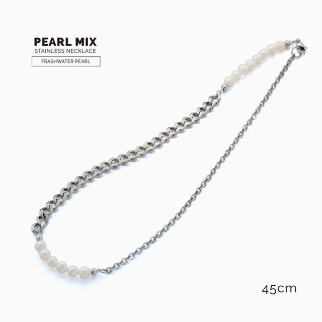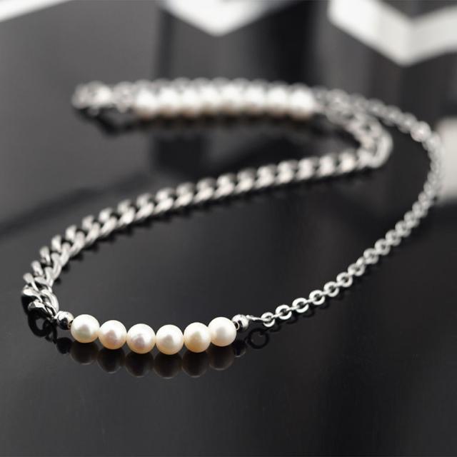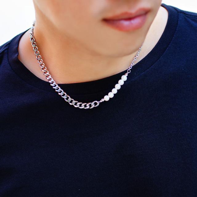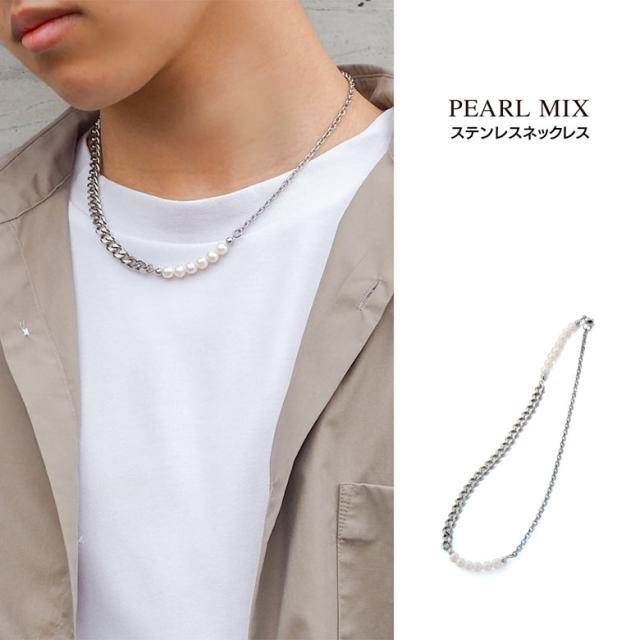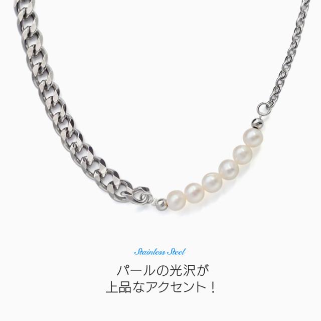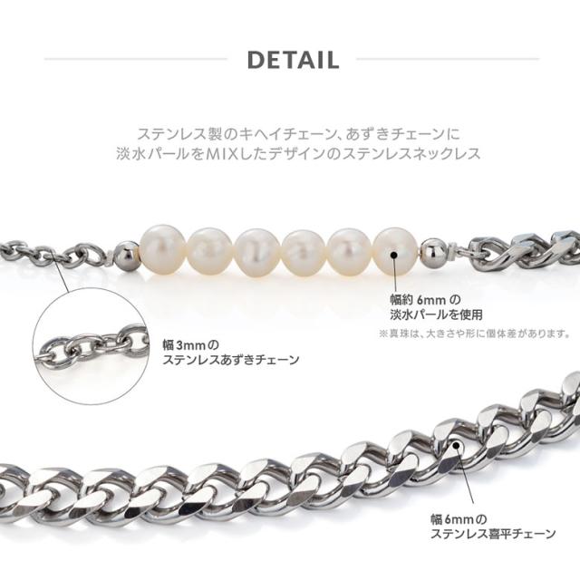 ネックレス メンズ 淡水パール 喜平チェーン ステンレスネックレス spe0363