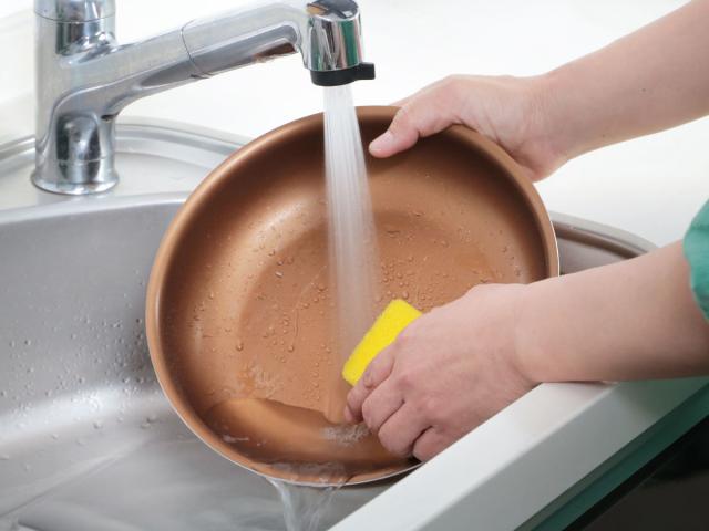内面に施されたふっ素樹脂加工により食材がこびりつきにくく、汚れも落としやすいのでお手入れが簡単です。