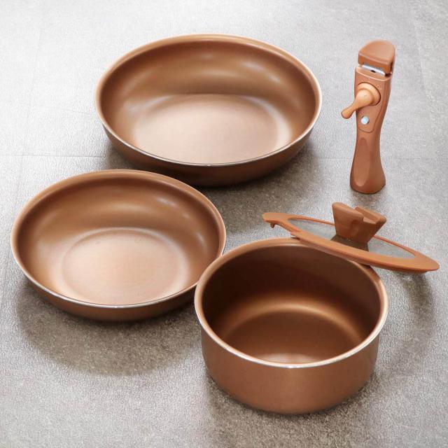 内外面ゴールドコーティング、IH対応クックウェア5点セット