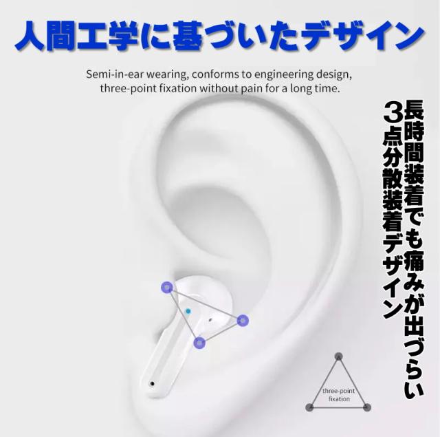 人間工学デザインによりフィットする付け心地で長時間付けていても耳が痛くなりずらい3点重力仕様です。