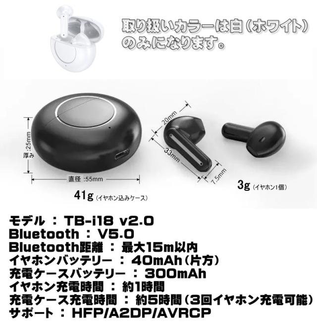 【送料無料・税込み】最新 TB-i18 v2.0 ワイヤレス イヤホン Bluetooth 5.0 無線 話題の 完全 無線 TWS 充電 ケース ハンズフリー 通話 タッチセンサー 高音質 高級感 白 ホワイト iphone Android カラー 軽量 当店おすすめ 当店人気 ランキング プレゼント ギフト 売れてる