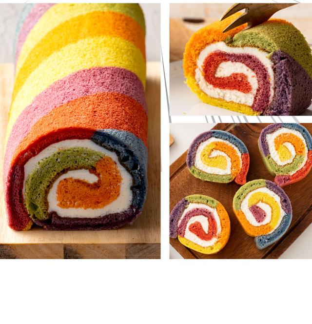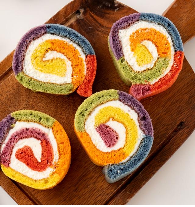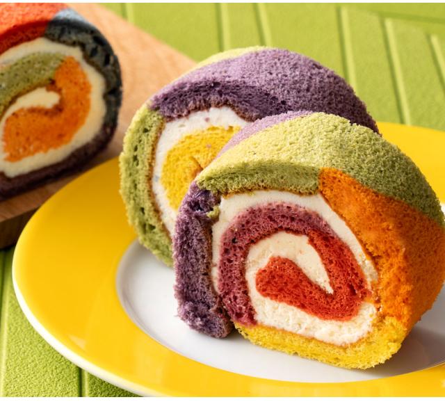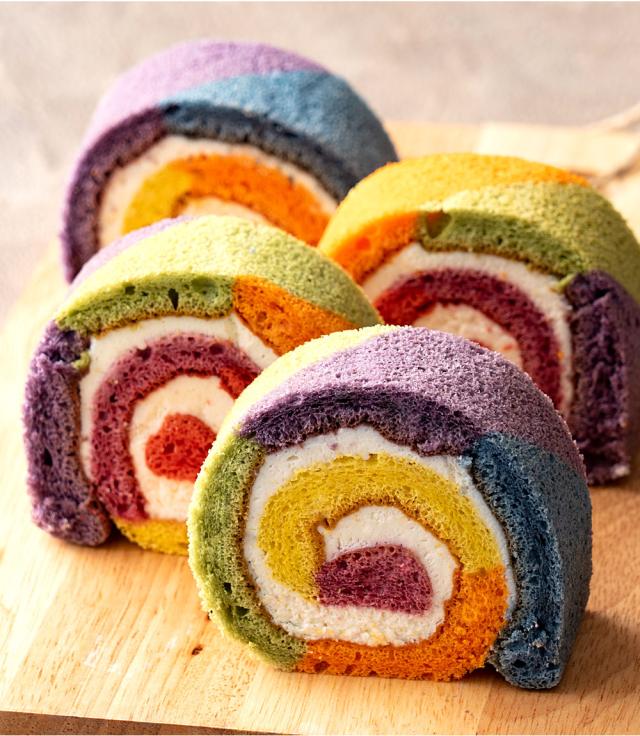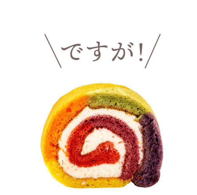 - レインボーロールケーキが開けた瞬間のビックリなこと。味もとても美味しいです。主人と二人でペロリと食べてしまいました。
