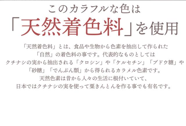 原材料名:クリーム(国内製造)、卵、砂糖、小麦粉、食用調合油、粉糖、食塩/膨張剤、着色料(クチナシ黄色素、クチナシ青色素、クチナシ赤色素、トウガラシ色素、ベニコウジ色素)、(一部に乳成分・小麦・卵・大豆を含む)