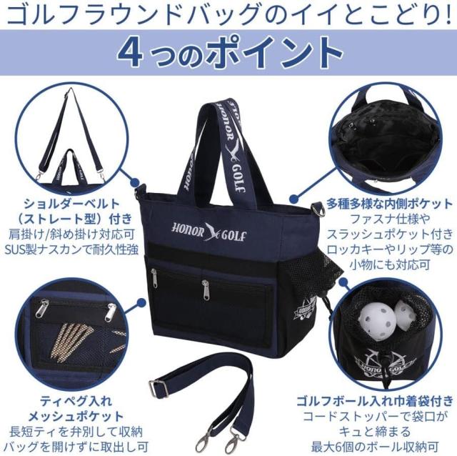 新多機能付きHONOR GOLFのラウンドトートバックです。