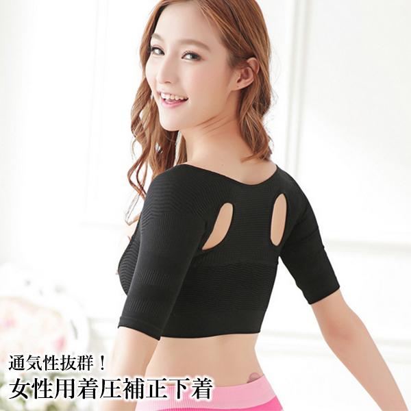 二の腕シェイパー 二の腕 着圧 引き締め 猫背 背筋伸ばし シェイプ 補正下着 レディース ブラック L (管理S) 送料無料