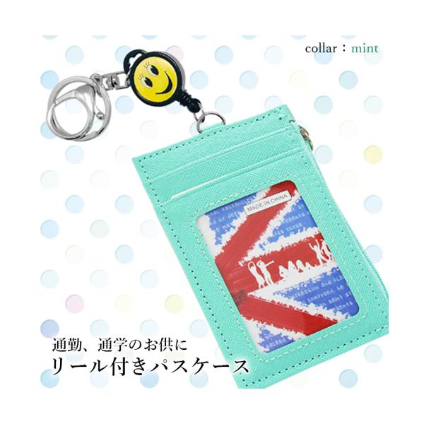 パスケース リール付き 定期入れ ICカードケース 子ども 小銭入れ 可愛い 通勤 通学 ミント (管理S) 送料無料