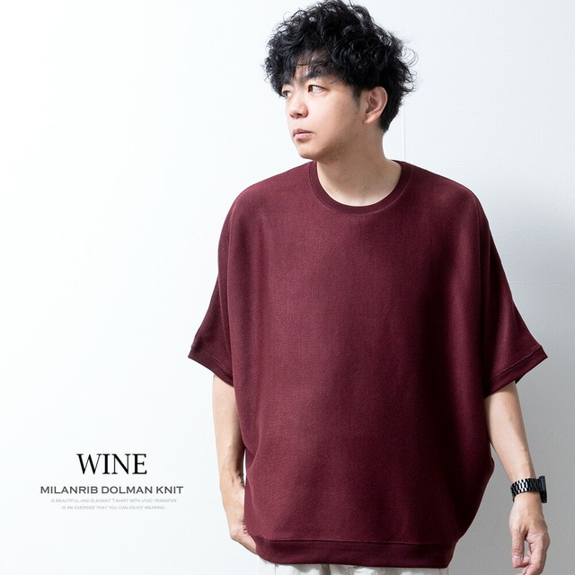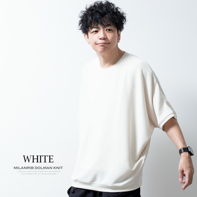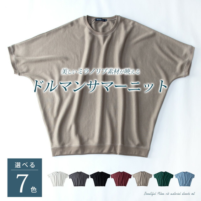 サマーニット メンズ 半袖 ドルマン サマーセーター ストレッチ ドルマンスリーブ ミラノリブ クルーネック 春秋 おしゃれ 五分袖 ドルマンニット ゆったり ホワイト 全7色 JP63400 トップス オーバーサイズ