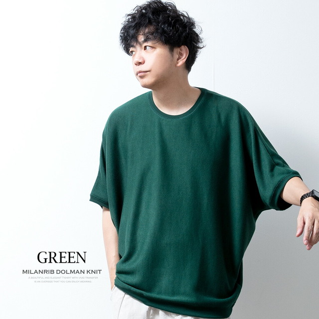 サマーニット メンズ 半袖 ドルマン サマーセーター ストレッチ ドルマンスリーブ ミラノリブ クルーネック 春秋 おしゃれ 五分袖 ドルマンニット ゆったり ホワイト 全7色 JP63400 トップス オーバーサイズ ビッグシルエット グリーン